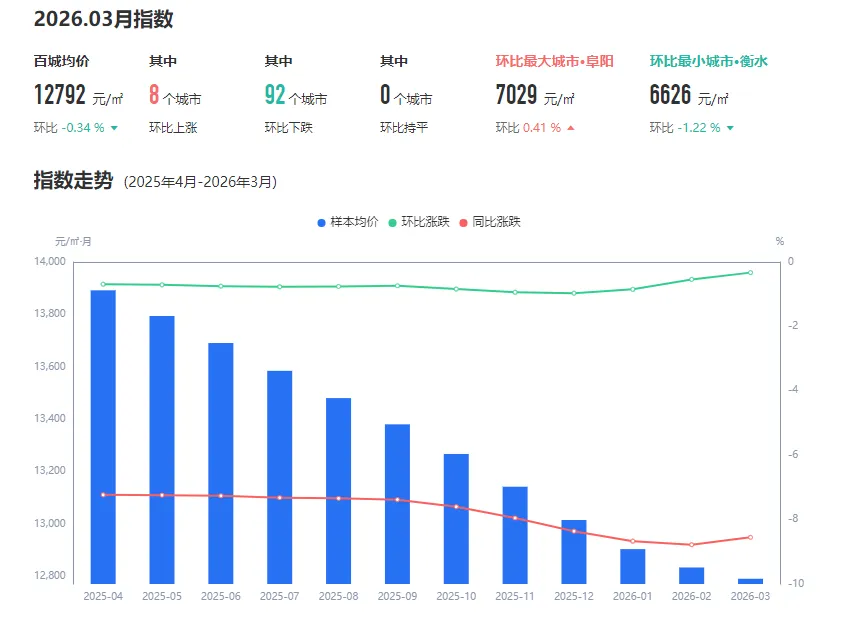 中指研究院的数据显示,3月百城二手住宅均价环比仍下跌0.33%,只是跌幅连续第三个月收窄。