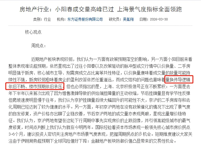 更关键的是价格信号——中指研究院数据显示,3月上海二手房挂牌价结束了此前连续33个月的下跌,首次环比上涨。