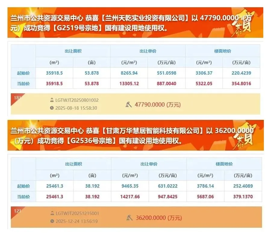 举个简单的例子,2025年,兰州土拍市场两个“地王”:保利拿下的马滩G2519号宗地,历经181轮激烈竞价才成交;令牌拿下的毛条厂G2536号宗地,也经历了121轮激烈竞价。