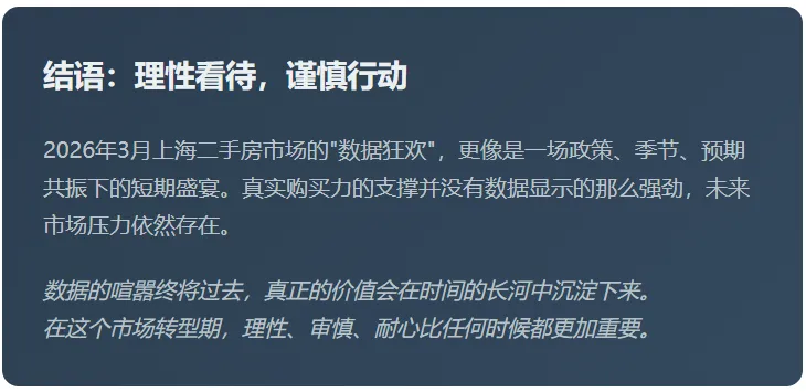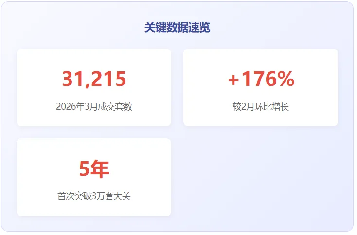 2026年3月,上海二手房市场创下五年新高,成交31215套的亮眼数据背后,真实购买力的后续力度存疑。政策刺激、季节因素与市场预期共振造就了这场"数据狂欢",但理性分析显示,未来市场压力依然存在。