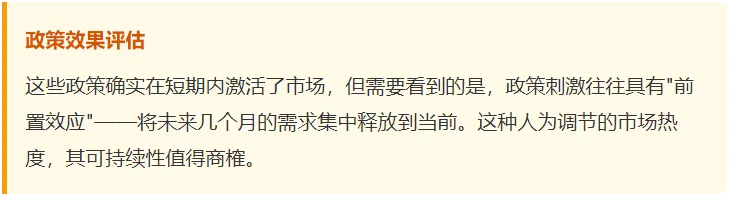 这些政策确实在短期内激活了市场,但需要看到的是,政策刺激往往具有"前置效应"——将未来几个月的需求集中释放到当前。这种人为调节的市场热度,其可持续性值得商榷。