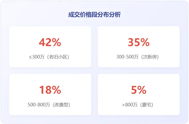 刚需主导:77%的成交集中在500万以下改善乏力:500万以上房源成交复苏缓慢豪宅疲软:部分区域豪宅价格较峰值下跌34%