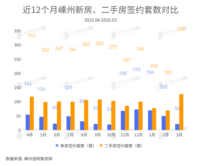 2026年3月二手房签约336套,签约面积36212㎡。