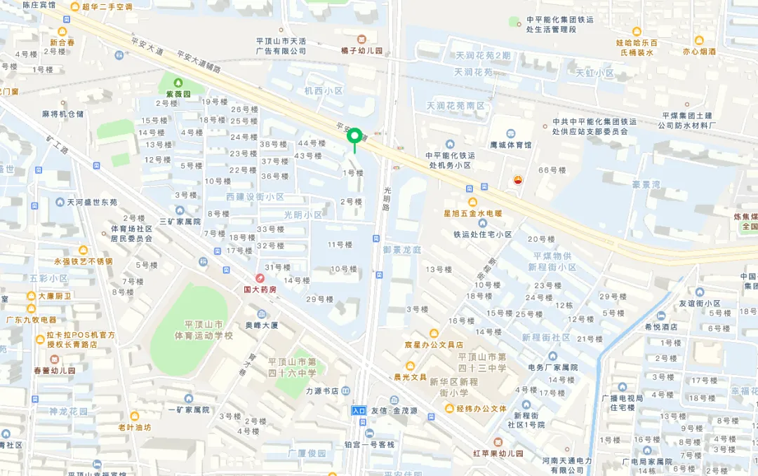 新华区平安大道与光明路交汇金角旺铺,坐拥成熟社区海量稳定客源。临主干道,门头醒目,昭示性极佳。