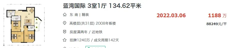 而在2022年的时候,小区的成交单价曾经达到了88249元/㎡。