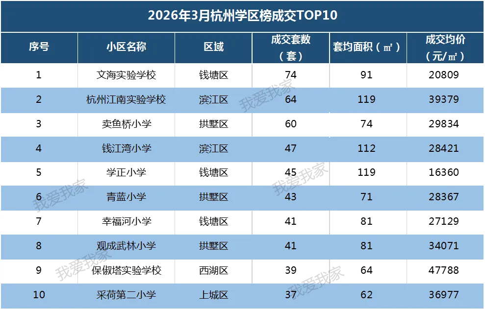 从我爱我家的这份3月份学区成交榜上可以看到,下