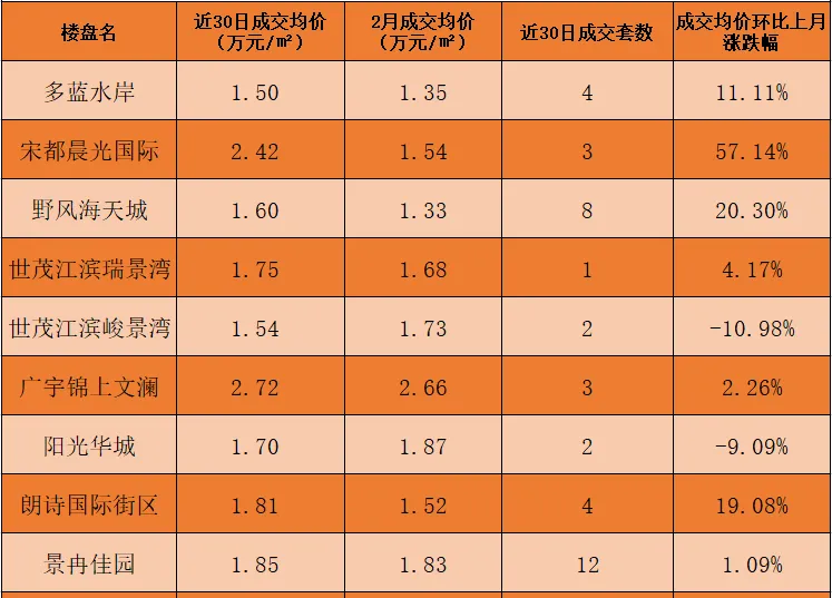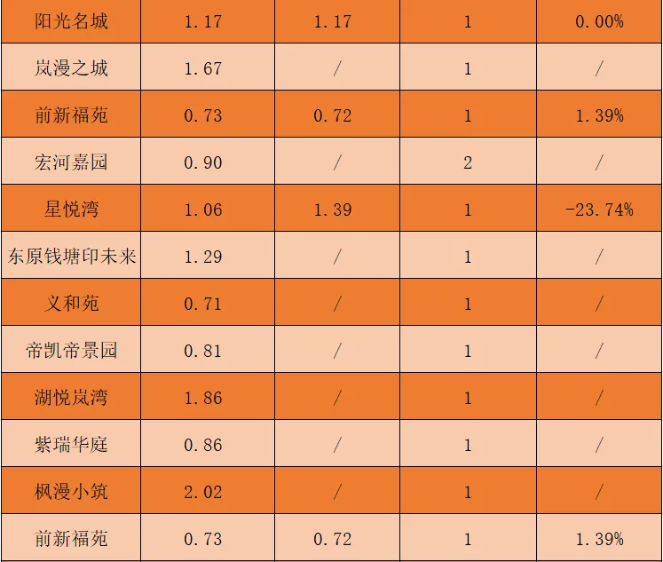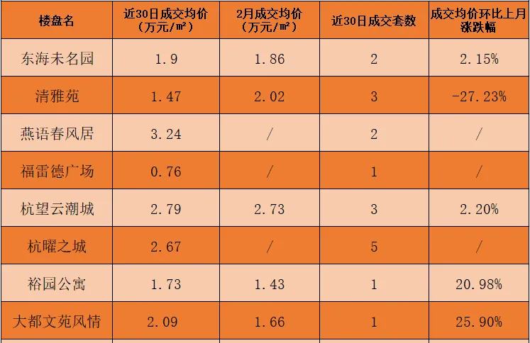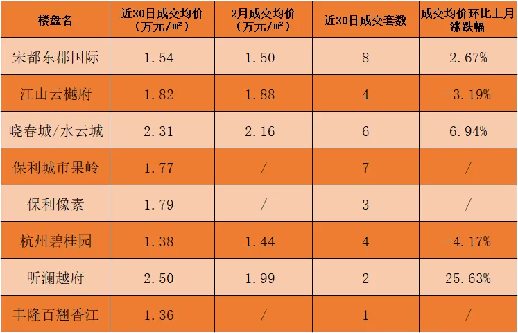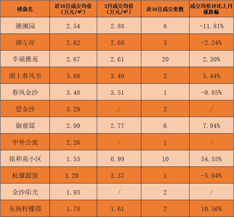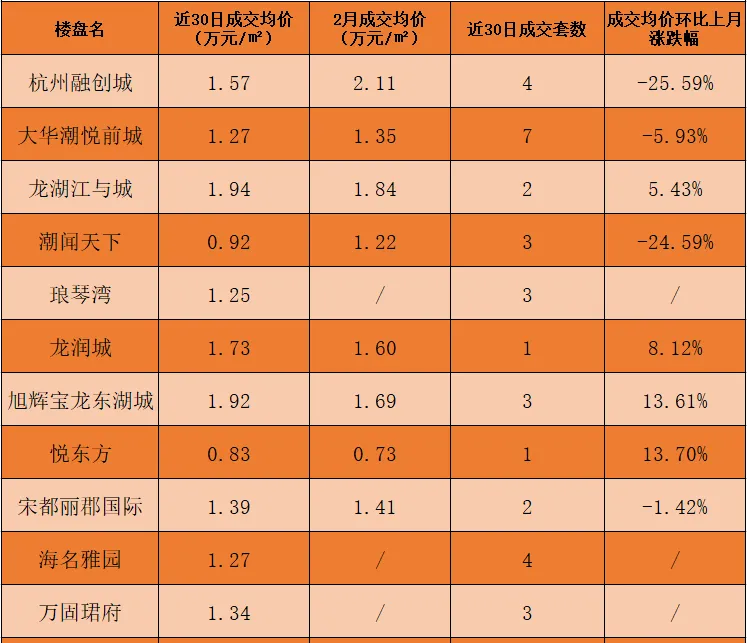 东杭州整理了近30日,钱塘区部分热门小区的成交数据。