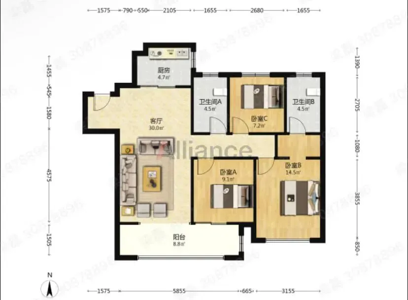 20、🎉中梁最前排115平毛坯,三室两卫双阳台好楼层,全天采光91.8万,有密码随时看房!,☎18961113637