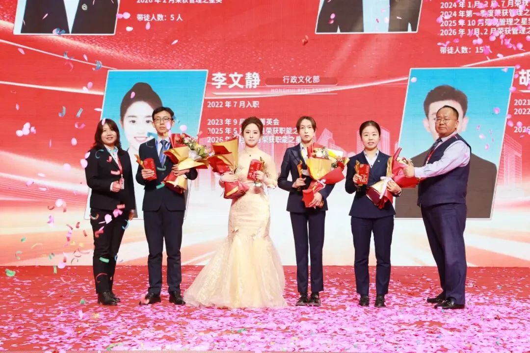 管理层的晋升,不仅是对个人工作能力的认可,更是企业对他们的信任与期许。他们在各自的岗位上兢兢业业,取得了显著的成绩。在现场宏辉精英们的共同见证下,他们被赋予新的身份。在新的岗位上,他们将秉持宏辉人坚韧不拔的品质,肩负信任与期待,带领团队迈向新的征程。