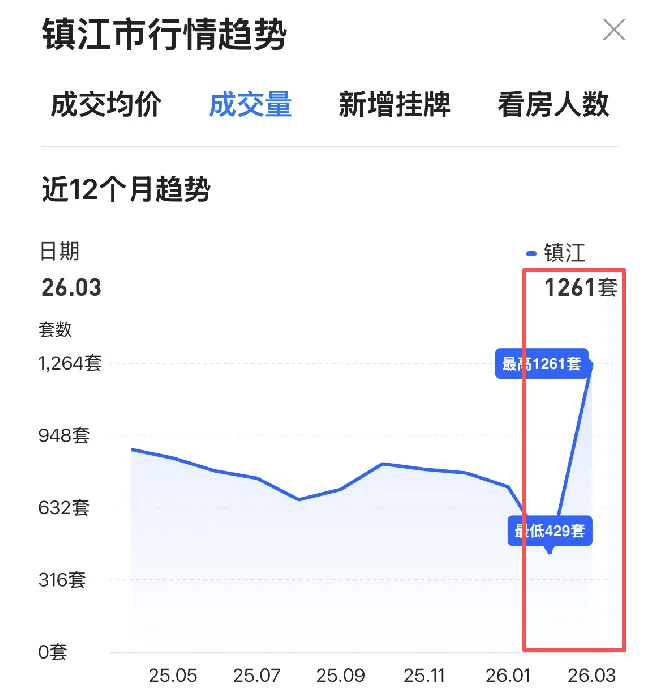 从折现图能明显看出:镇江2026年3月二手房成交量,创下了12月以来的新高!