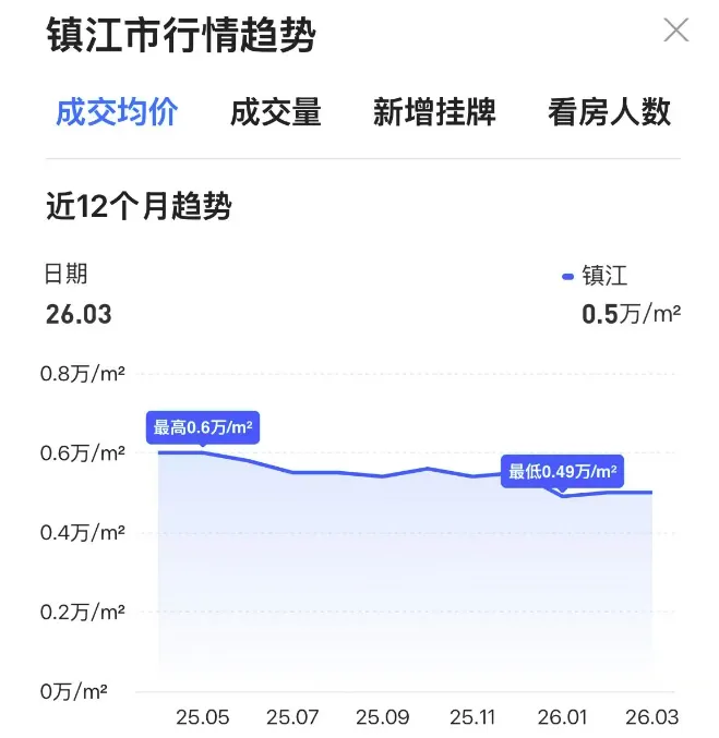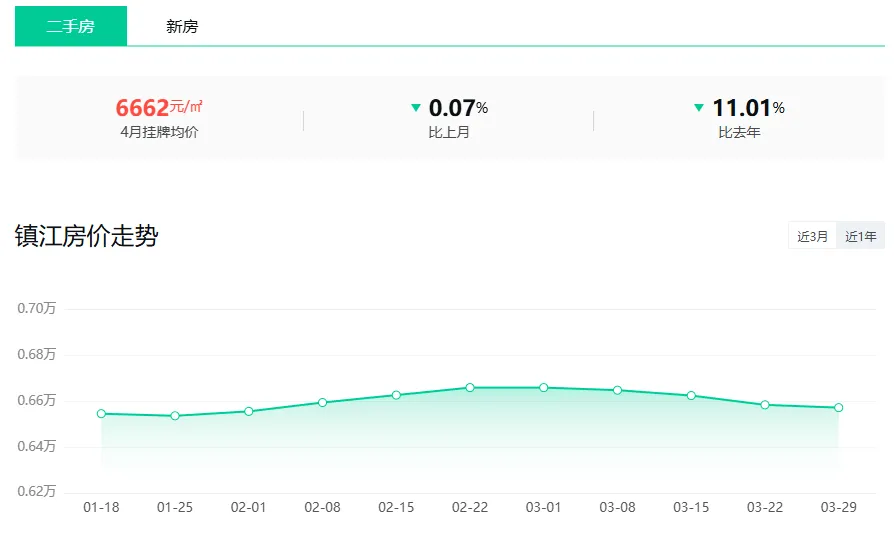 根据安居客数据,镇江二手房挂牌均价目前是6662元/㎡,市场趋于平稳。