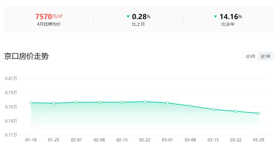 京口区3月二手房均价7570元/m²,环比上月下降0.28%;同比去年同期下降14.16%