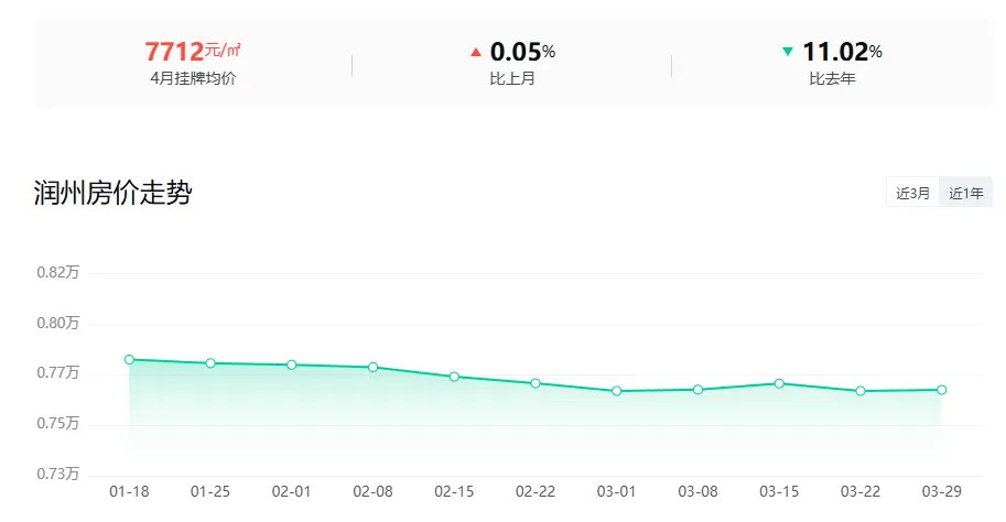 润州区3月二手房均价7712元/m²,环比上月上涨0.05%;同比去年同期下降11.02%。