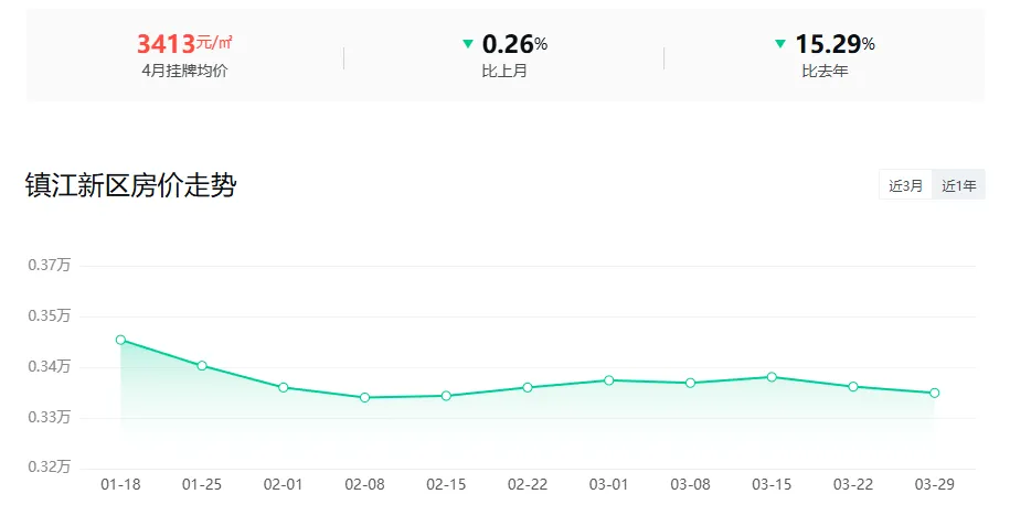 镇江新区1月二手房均价3413元/m²,环比上月下降0.26%;同比去年同期下降15.29%