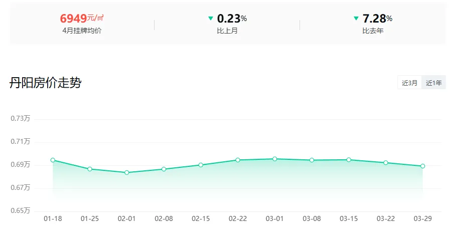 丹阳市3月二手房均价6949元/m²,环比上月下降0.23%;同比去年同期下降7.28%