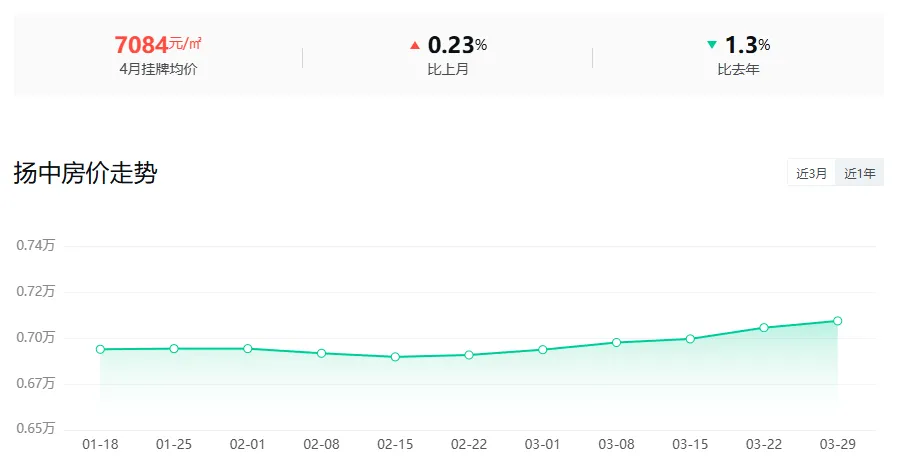 扬中市3月二手房均价7084元/m²,环比上月上涨0.23%;同比去年下降1.3%1、现在虽然市场有所回暖,但看房别着急,多看多比较,现在各方面购房政策宽松。2、有条件话,盯紧南徐、滨江等核心区域的豪宅,这类房子受到市场影响小,在市场下行期抗跌,在市场上行期先涨。3、学会合理议价,无论是买家还是卖家,都不要猛降或猛涨,这对于成交没有好处。以上就是今天的全部内容,你看好接下来镇江的二手房市场吗?欢迎评论区互动。