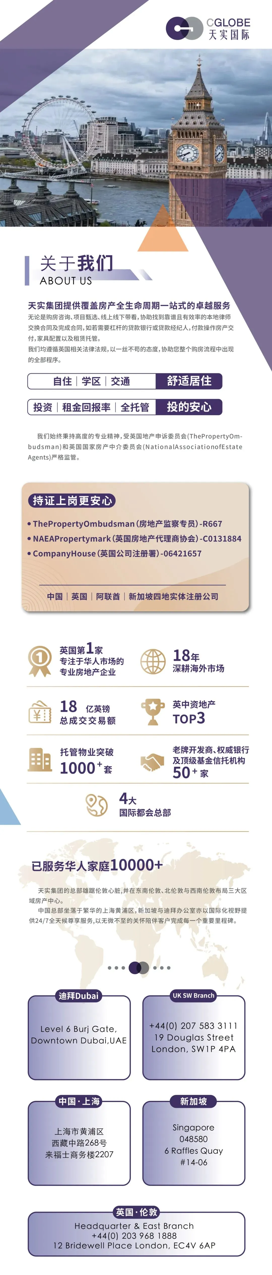 作为伦敦工商会成员、受英国地产申诉委员会监管,团队已服务数万名华人及中资机构客户,代理全英超过200个项目,累计成交额突破7亿英镑,全托管物业超800套。