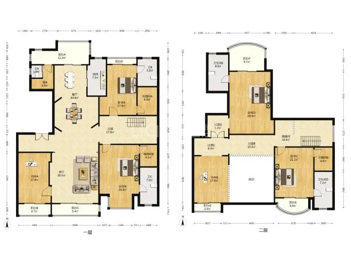 1、浦东-花木(浦东星河湾)亚洲十大豪梦幻豪宅,空中别墅 挑空客厅!买一层送一层 产证面积244平+200平 6房3厅5卫,单层层高3.6米,客厅挑空7米,每个房间都带有阳台,装修豪华,拎包即可入住。挂牌价4060万,单价不到10万!