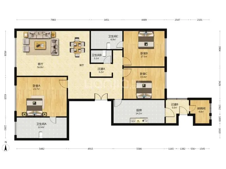 2、黄浦-新天地(*****)豪宅大平层,单价不到9万,绝对捡漏!产证面积447平,5房3厅4卫+保姆间,电梯高区视野开阔,户型方正南北通透,百平航母客厅。2006年高品质小区,4梯1户,小区半人车分流,足不出户电梯直达小区会所,业主累计降价2000多万,挂牌价3999万,比翠湖天地便宜一半,快卖掉了。