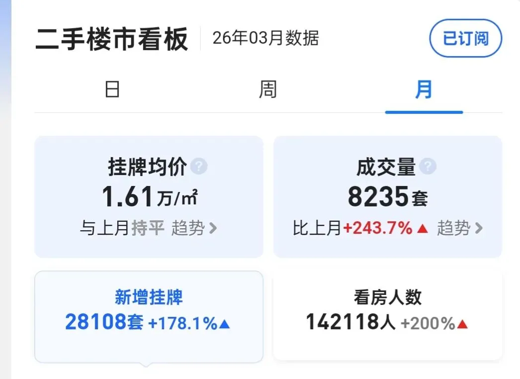 成交爆发:8235套的月成交量,环比2月出现数倍增长,同比去年也有明显提升。这意味着压抑的需求正在集中释放,市场流动性被彻底激活。