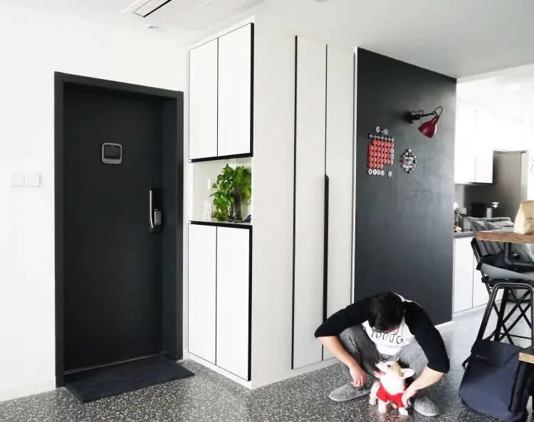 经过改造后的玄关,进门就眼前一亮,灰白色搭配简洁时尚。移除冰箱,左右两侧风格统一的玄关柜和收纳柜,满足了各种收纳需求,让玄关更加整洁。
