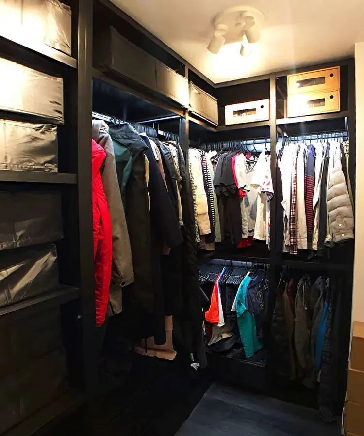 独立衣帽间,开放式的柜子设计,收纳穿衣更便捷。