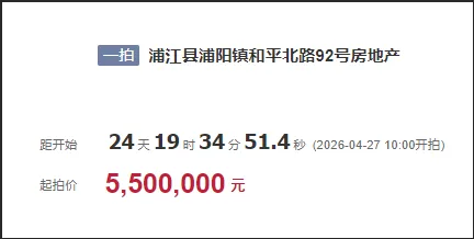 浦江县浦阳镇和平北路92号房地产一拍拍卖时间: