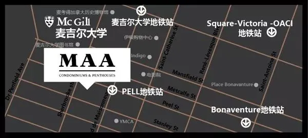MAA公寓位于历史悠久的黄金广场——蒙特利尔市中心的黄金地带,楼下即为peel地铁站,紧邻Sainte-Catherine商业街。距离麦吉尔大学仅短时间脚程。毗邻蒙特利尔美术博物馆。近康大、LaSalle学院。学校、超市、餐馆、咖啡厅等生活所需都尽在咫尺。除此之外,绿地、休闲场所和购物中心也都在您的家门口。悠享北美小巴黎的惬意生活。