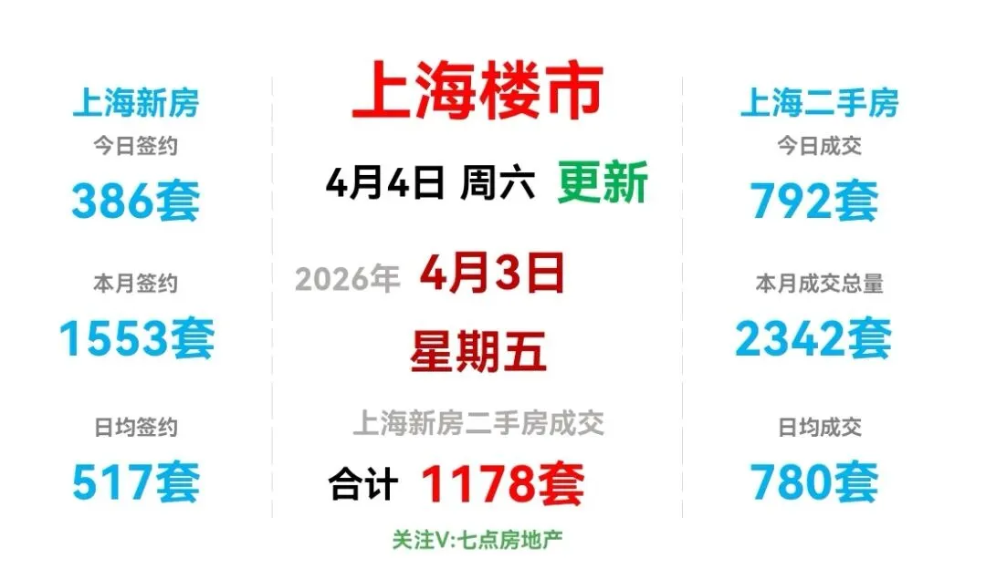 昨日(4月3日,周五),上海新房和上海二手房成交量合计1178套。