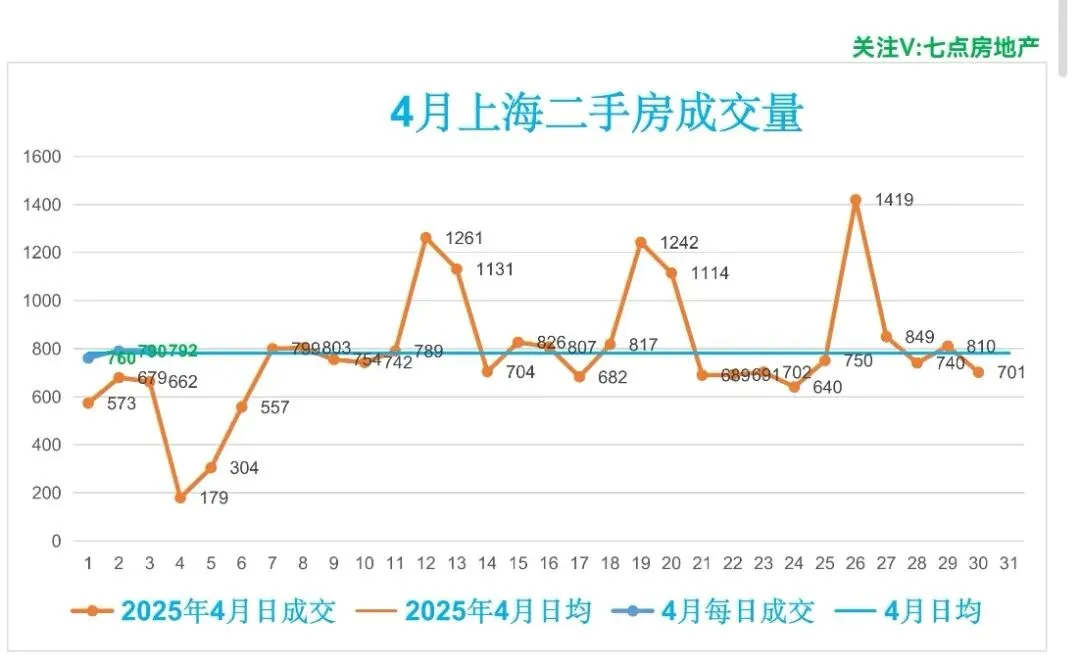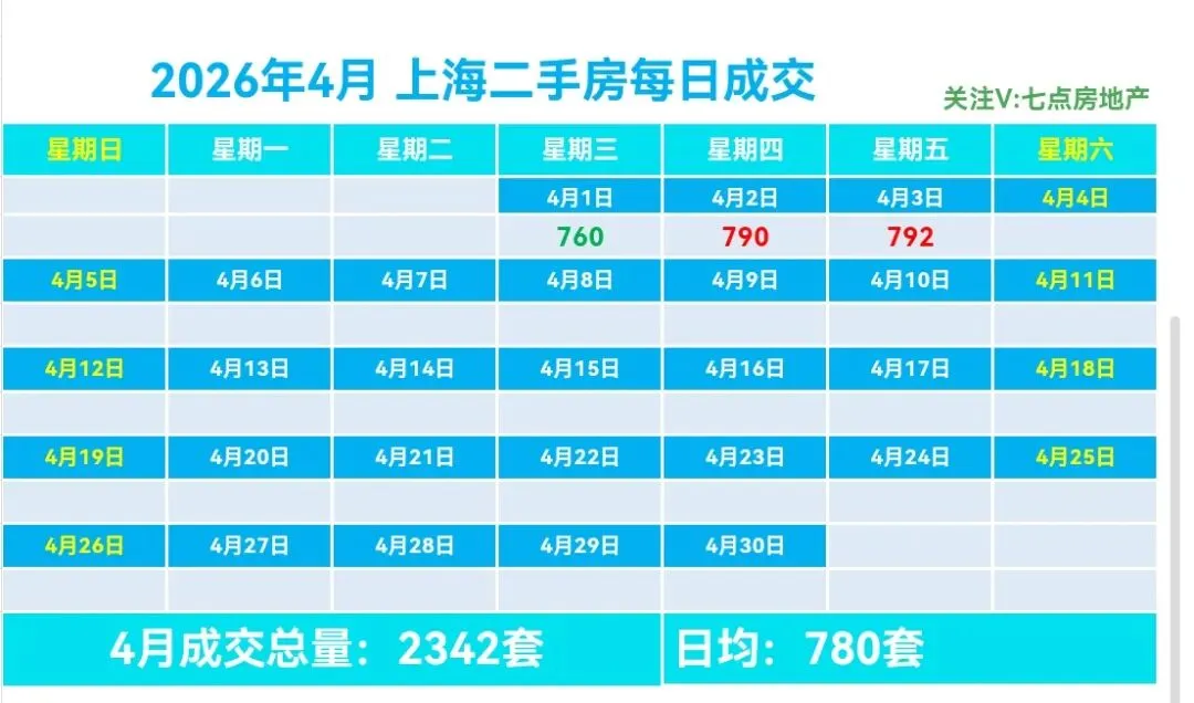 🏡4月,上海二手房成交量累计2342套,日均成交780套,较上个月日均减少226套(降幅22.47%)。