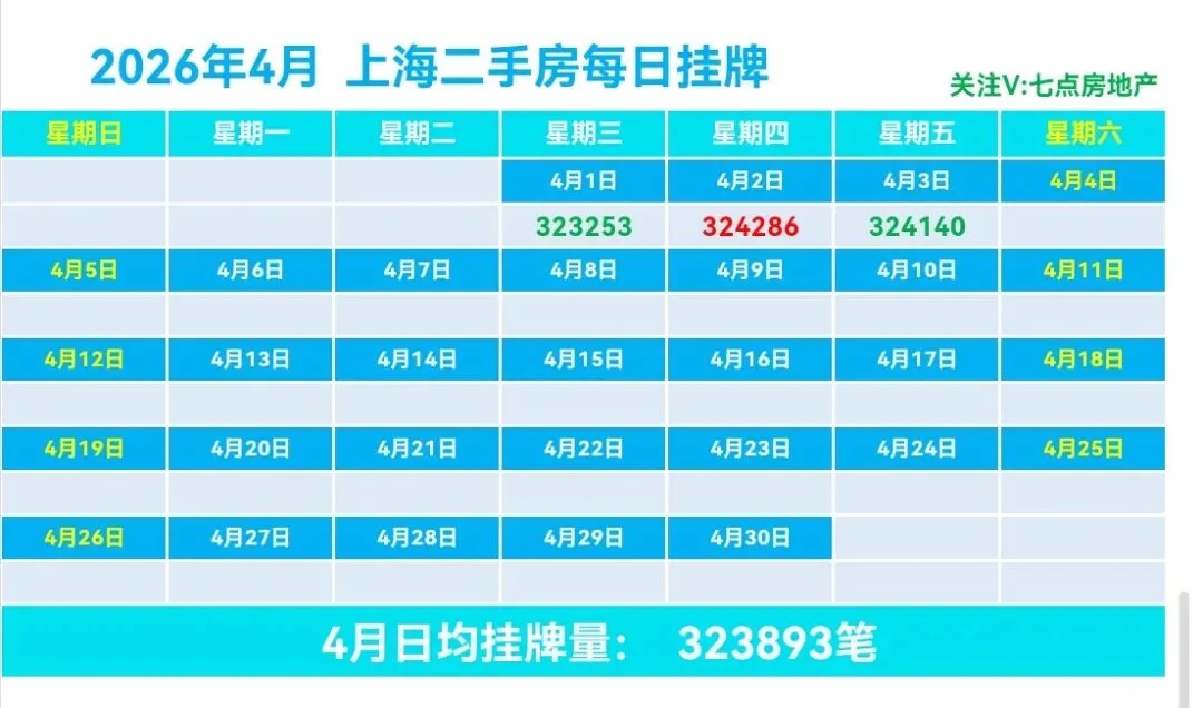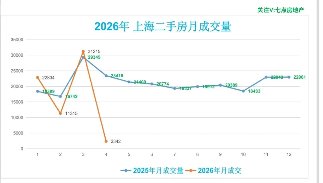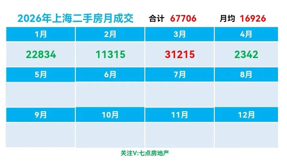 ♻️截止2026年4月3日,2026年上海二手房成交量合计67706套,月均21174套。