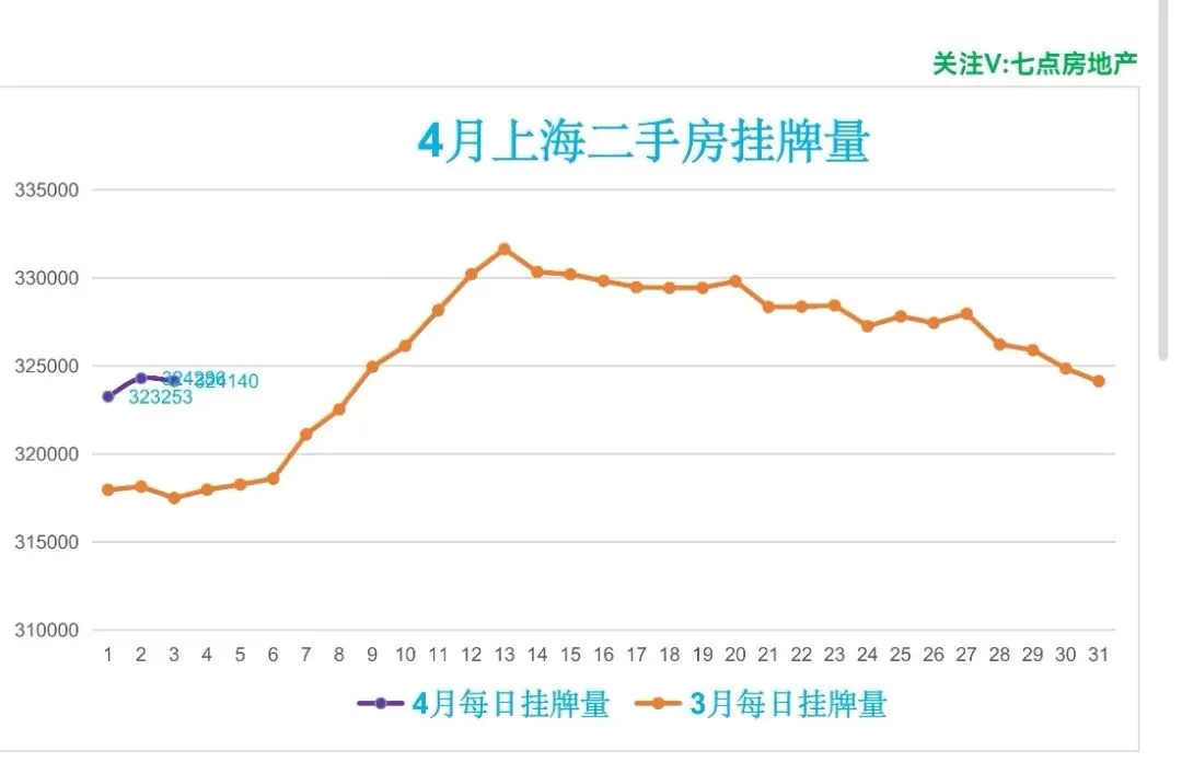 🏠昨日(4月3日,周五)挂牌324140笔,较前一日减少146笔,日均挂牌323893笔,约32.39万笔,挂牌与实际成交比415:1,去化周期约13.8个月。
