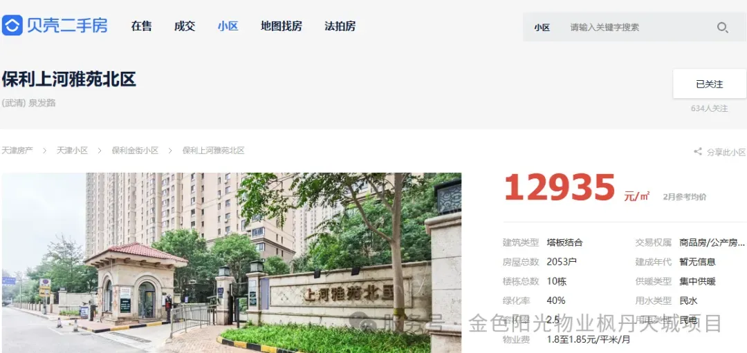 枫丹天城本月二手房挂牌均价