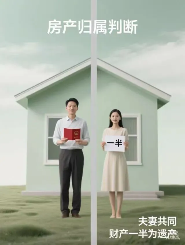 - 夫妻共同财产:比如婚后购买的房产。被继承人去世后,只有一半属于遗产(另一半直接归健在的配偶,不参与继承)。