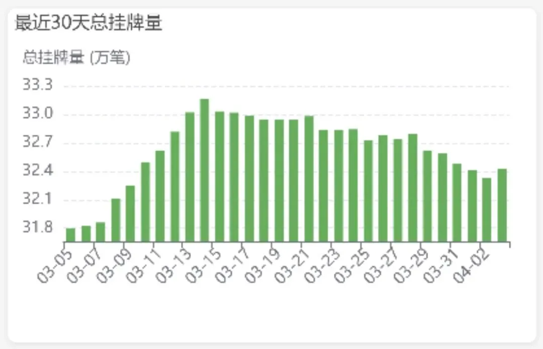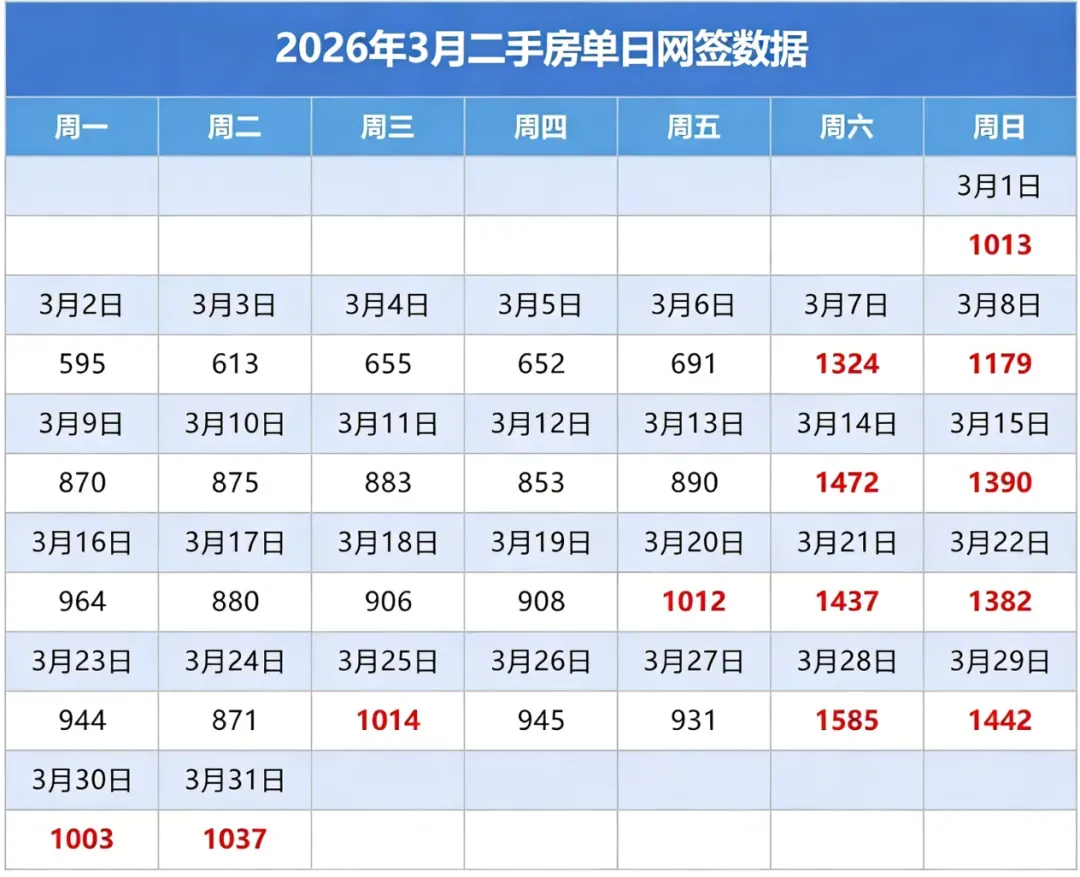 单日成交屡创峰值:3月28日网签1585套,刷新5年最高日纪录;3月29日、30日、31日、25日,分别刷新周日、周一、周二、周三单日成交纪录,3月共有13天单日成交超1000套,工作日也频现千套成交,为近年罕见。