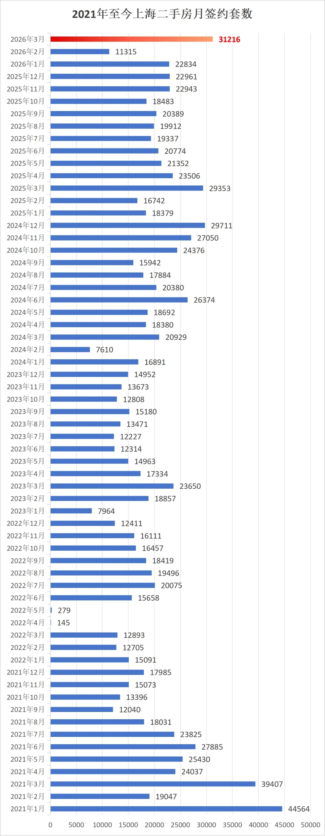 月成交创5年新高:3月上海二手房网签31215套,日均网签突破1000套,直接刷新近5年最高月纪录,成交规模远超往年同期。