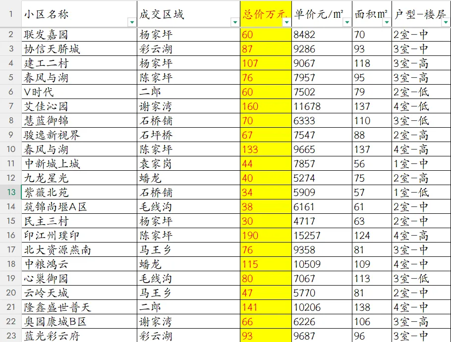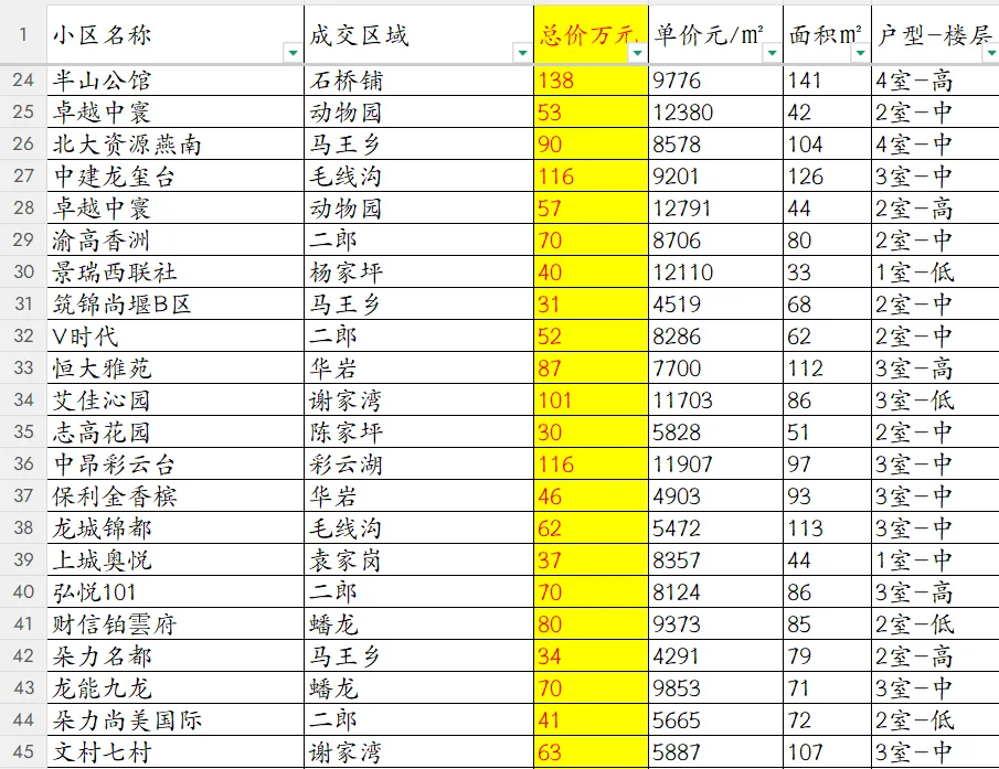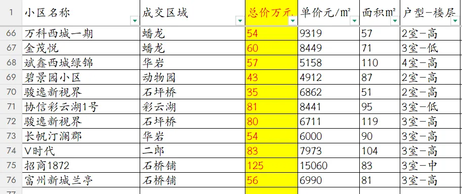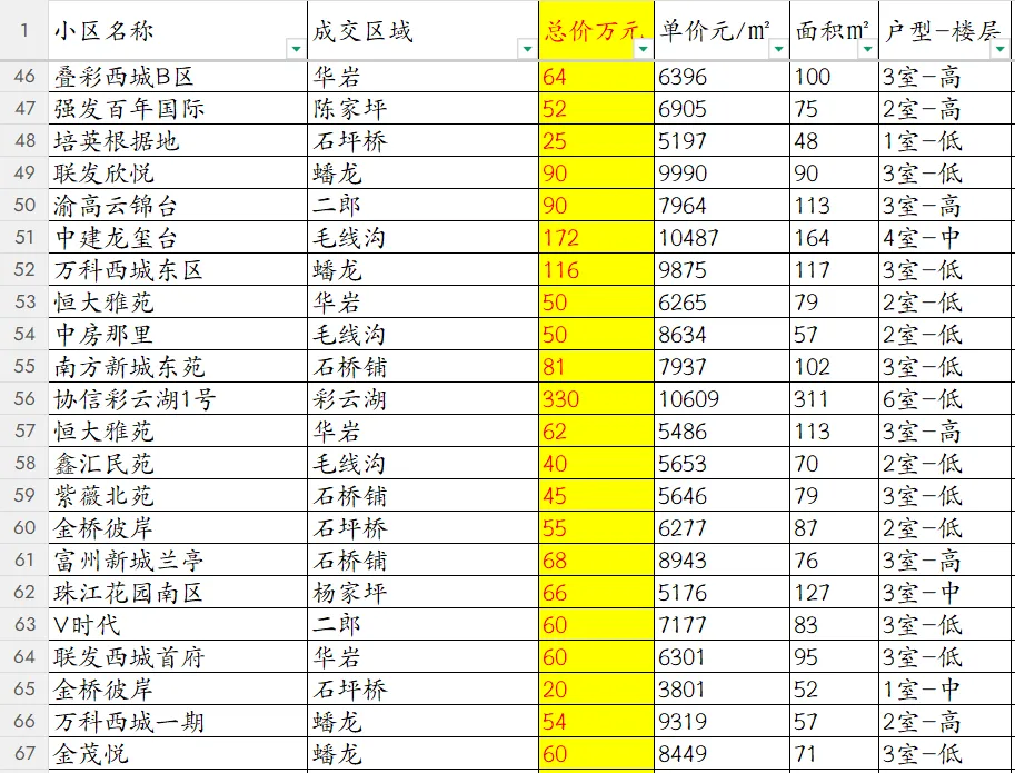 [重庆0404期]九龙坡二手房成交数据明细,有你关心的小区吗?