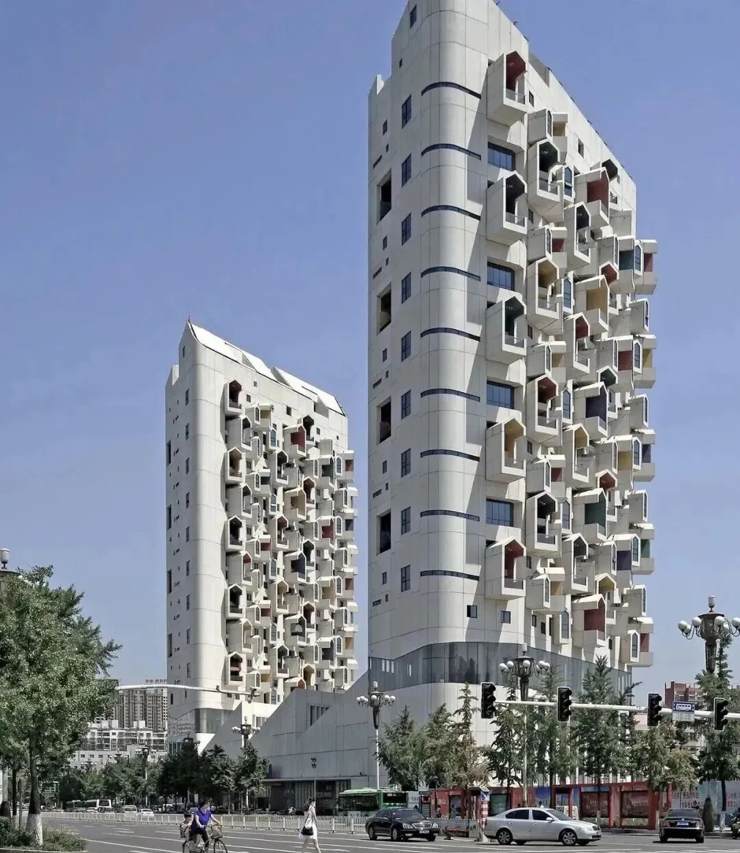 建筑位于居民区里,造型看上去有点另类,外立面全是大大小小的小盒子,不过也因为其独特的造型,成为了唐山著名的网红打卡点。