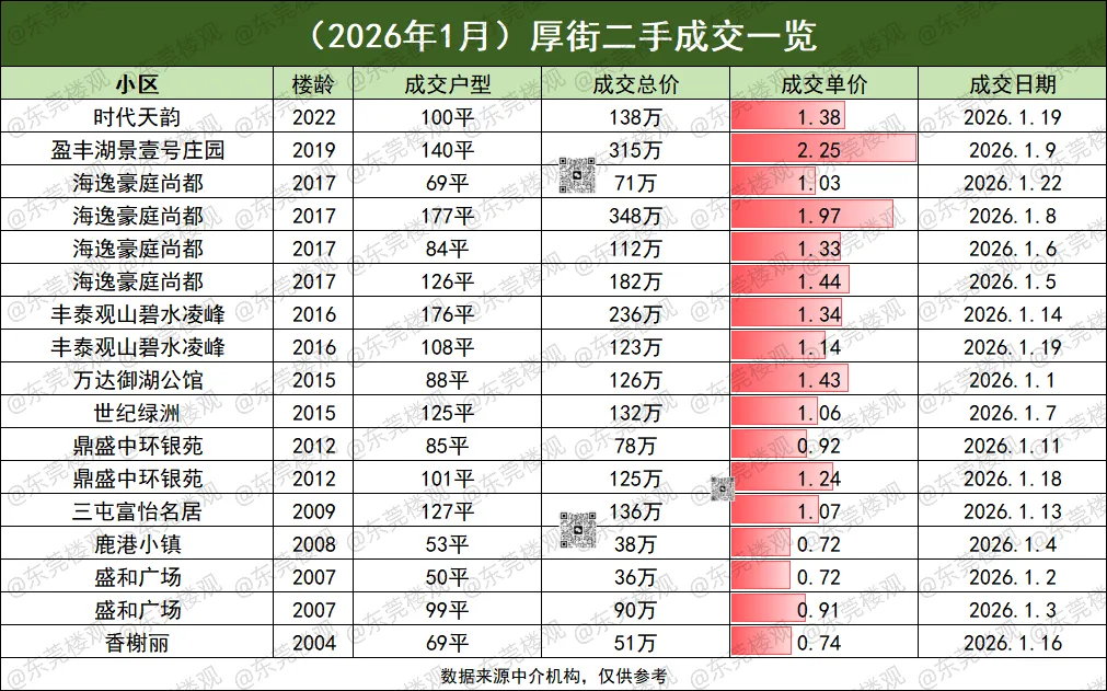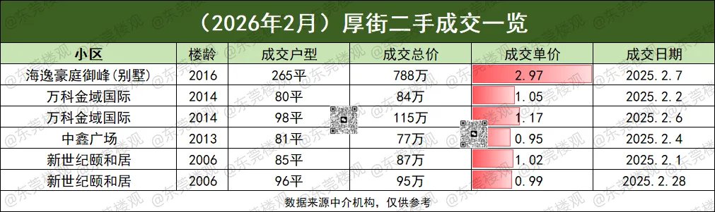本次统计的是厚街2月份成交数据(统计时间为2026年2月1日至2月28日),另厚街(2026年1月份)数据同步发出。