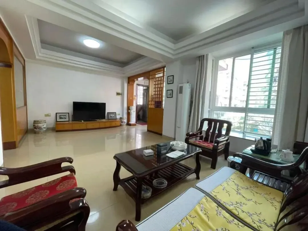 新嘉华庭142㎡,3房2厅3卫,高档装修,南北通透,三面采光,包家具家电,有契满五唯一,售83.8万,车库一个另计