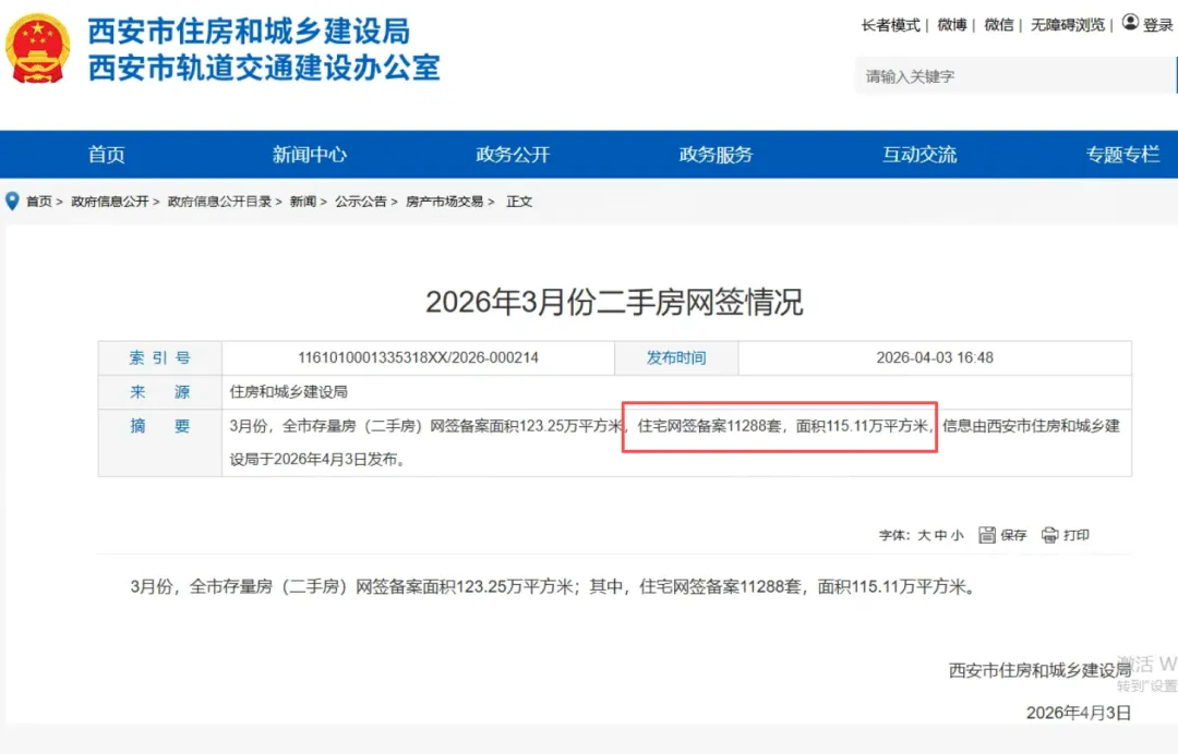 而就在4月3日,西安市住建局官方数据出炉,更是彻底坐实当前西安市场热度。