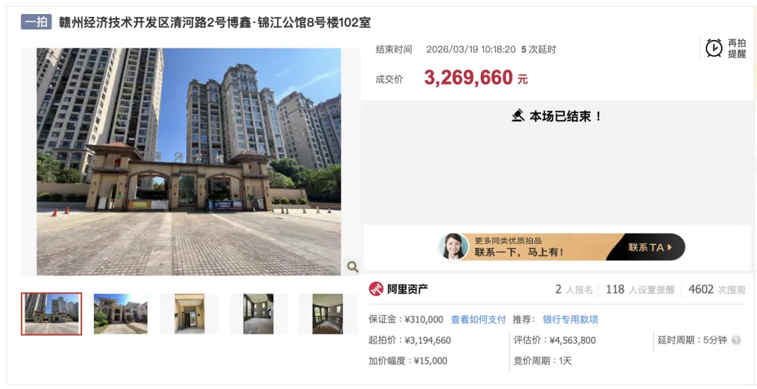 ▲ 赣州锦江公馆一套别墅一拍就成交了