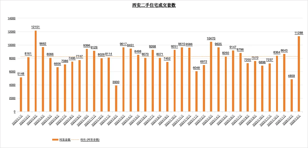 图中列出了2023年1月至今每个月的二手房成交数据。一年12个月,3月最高,4月次之,10月11月次之,1/2月春节期间成交量最低,大体上是这样一个规律。从最近四年3月的成交量来看,这次的11288套,仅次于2023年3月,算是“不错”,还称不上所谓的“火爆”行情。2023年3月热闹的市场,是因为前面几年口罩期间积压了好多需求,2022年底全面放开,一下子火热起来。要知道,2023年的二手成交价格,可比2026年高一大截。2026年价格已经普遍下调了,成交量依然没有超过2023年3月,还要看接下来几个月,能不能保持较高的成交量了。 2