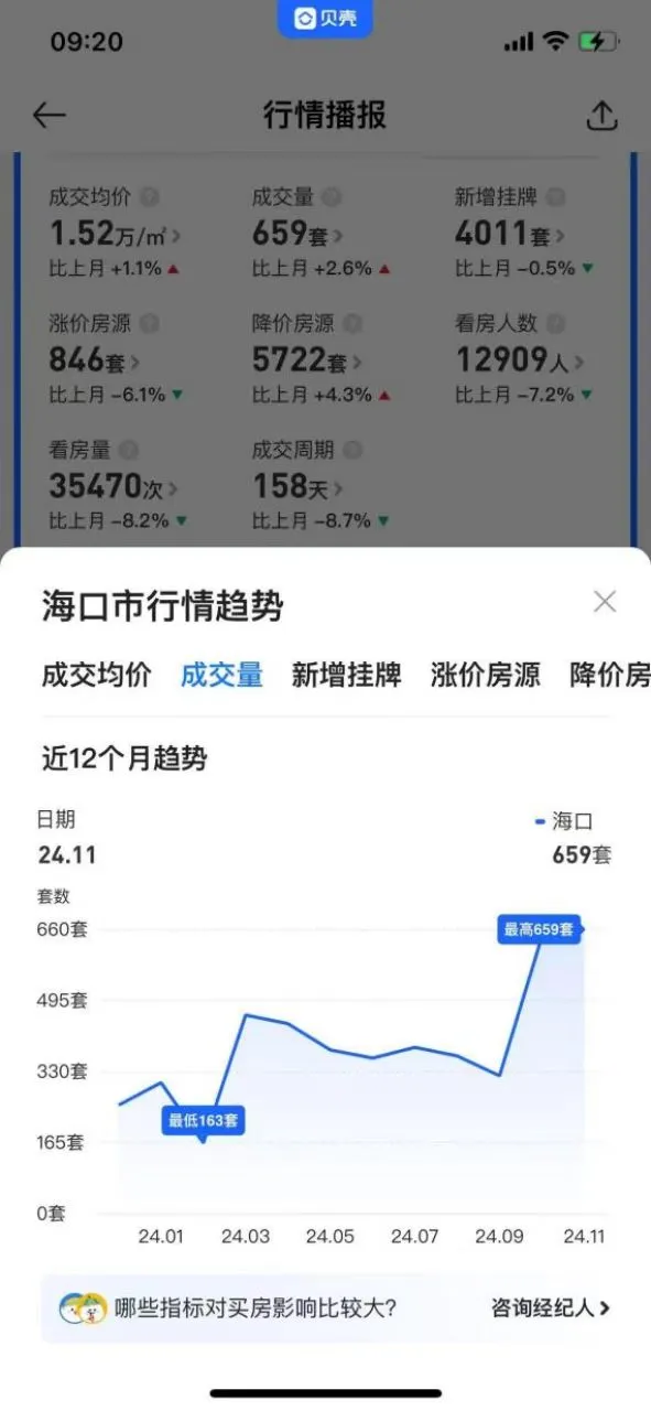 先说一句,根据行业调研,贝壳平台常规的二手市占率,约占海口3-4成规模,门店在海口的覆盖率超过60%。具有较强的市场参考性。