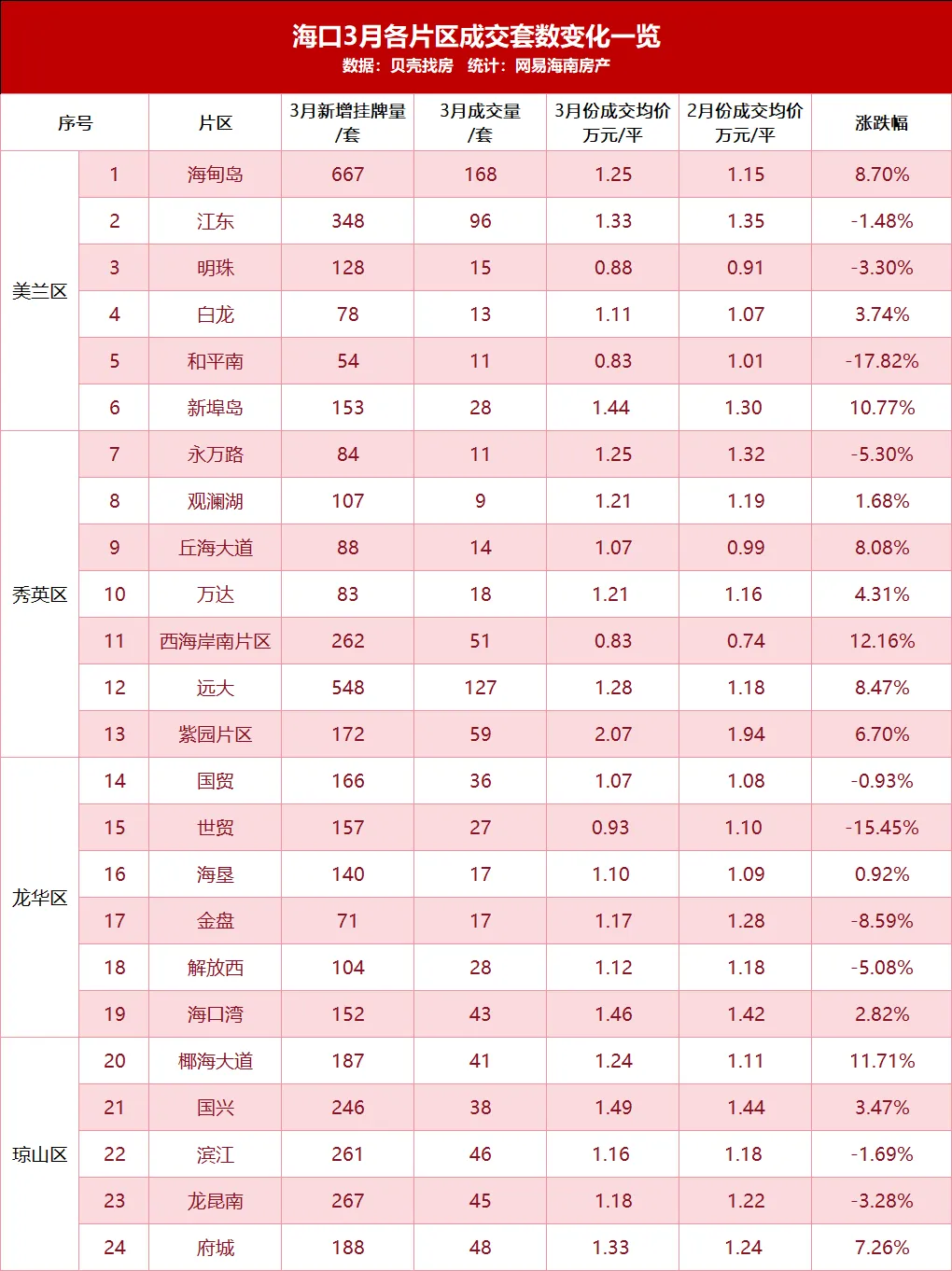 1、海甸岛:成交、均价双涨,热度居高不下