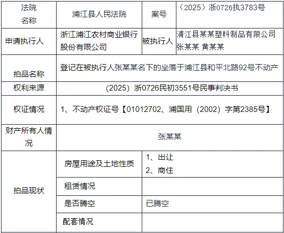 浦江县浦阳镇和平北路92号房地产一拍拍卖时间: