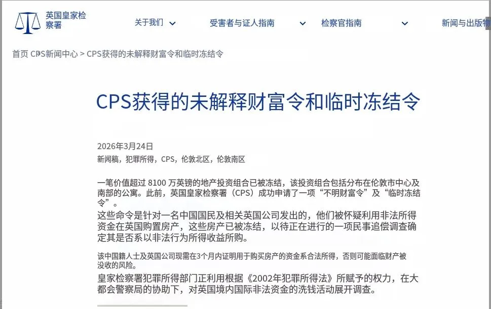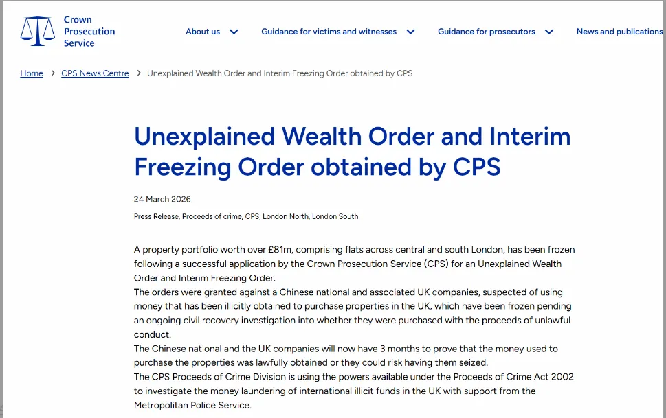 此次英国方面动用的并非刑事扣押程序,而是“不明财富来源令”(UWO,Unexplained Wealth Order)和“临时冻结令”(IFO),依据《2002年犯罪收益法》赋予的权力,由英国皇家检察署联合伦敦警察厅共同执行。英方表示,目前正全力追查购房资金的源头,重点核查资金是否来自非法赌场运营、跨境洗钱等违规活动,而苏江波及其关联公司,必须在3个月内提交完整的资金合法证明,否则房产将被依法没收。