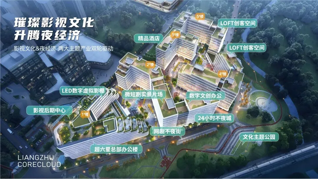 项目1号楼和2号楼是我们的超六星配置写字楼,现已入住一批总部级企业和影视中心,有全国最大的短剧拍摄基地,还有会议中心、中央餐厅、共享会议室和购物中心,商业街等配套服务。主要的入驻企业为影视公司、文创设计、数字科技类公司等,项目3号楼入驻全季酒店、亚朵酒店等;4号楼和5号楼是我们目前在售的商住房。