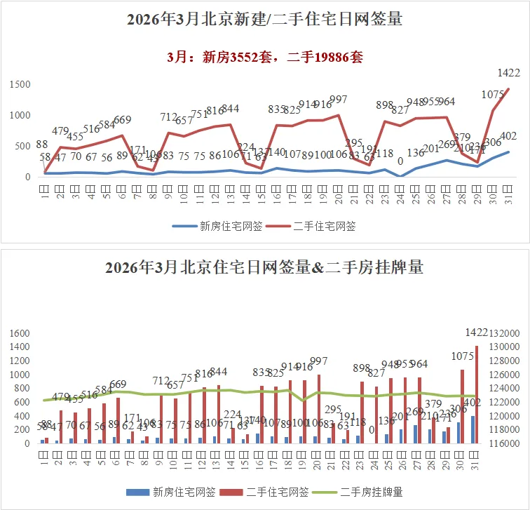 2026年4月1-4日北京住宅网签量&二手房挂牌量
