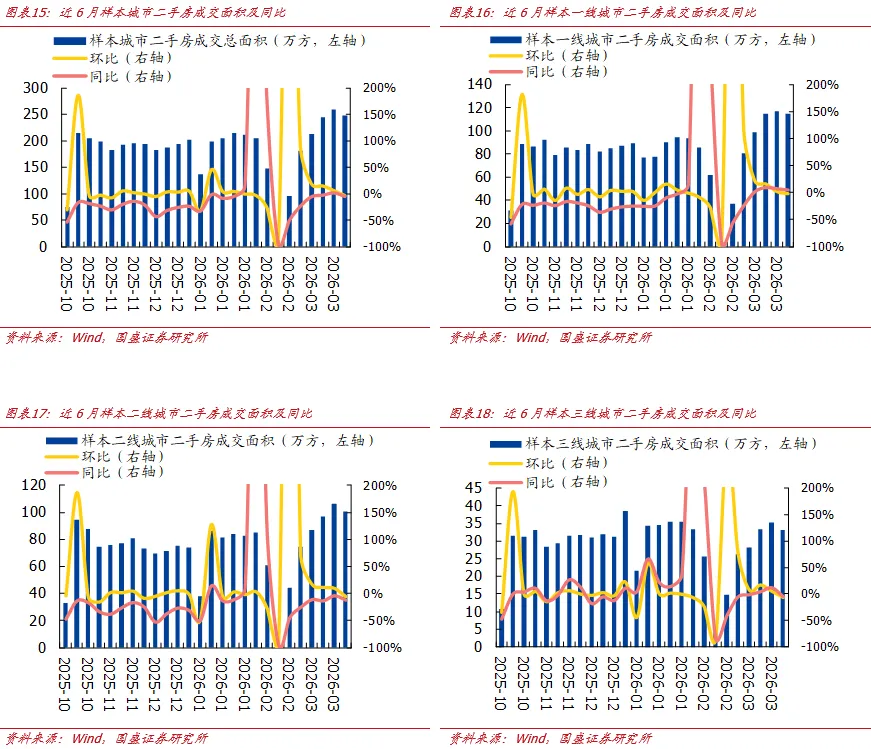 分析师 金晶 执业证书编号:S0680522030001分析师 夏陶 执业证书编号:S0680524070006具体分析详见国盛证券研究所2026年4月5日发布的《2026W13:本周二手房成交同比-4.1%,一季度土地市场在较低基数上负增》报告特别声明:《证券期货投资者适当性管理办法》于2017年7月1日起正式实施。通过微信形式制作的本资料仅面向国盛证券客户中的专业投资者。请勿对本资料进行任何形式的转发。若您非国盛证券客户中的专业投资者,为保证服务质量、控制投资风险,请取消关注,请勿订阅、接受或使用本资料中的任何信息。因本订阅号难以设置访问权限,若给您造成不便,烦请谅解!感谢您给予的理解和配合。重要声明:本订阅号是国盛证券地产组团队设立的。本订阅号不是国盛地产组团队研究报告的发布平台。本订阅号所载的信息仅面向专业投资机构,仅供在新媒体背景下研究观点的及时交流。本订阅号所载的信息均摘编自国盛证券研究所已经发布的研究报告或者系对已发布报告的后续解读,若因对报告的摘编而产生歧义,应以报告发布当日的完整内容为准。本资料仅代表报告发布当日的判断,相关的分析意见及推测可在不发出通知的情形下做出更改,读者参考时还须及时跟踪后续最新的研究进展。本资料不构成对具体证券在具体价位、具体时点、具体市场表现的判断或投资建议,不能够等同于指导具体投资的操作性意见,普通的个人投资者若使用本资料,有可能会因缺乏解读服务而对报告中的关键假设、评级、目标价等内容产生理解上的歧义,进而造成投资损失。因此个人投资者还须寻求专业投资顾问的指导。本资料仅供参考之用,接收人不应单纯依靠本资料的信息而取代自身的独立判断,应自主作出投资决策并自行承担投资风险。版权所有,未经许可禁止转载或传播。